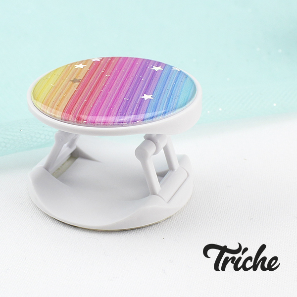 Soporte / Sujetador de Teléfono o Dispositivo Móvil. Diseño Arcoíris Material: Plástico suave / plástico duro con pegamento 3M Tamaño: 4.0cm circunferencia Color: COLORES PASTEL