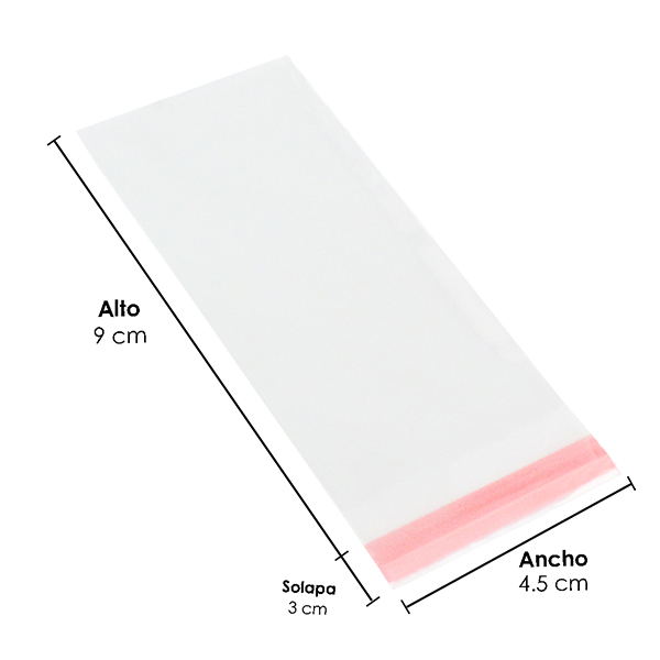 Bolsa plana de celofán con pestaña adhesiva de 3 cm.